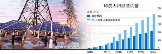 咨詢公司Bridge to India表示,目前有9吉瓦裝機量的太陽能發(fā)電項目正在建設(shè)中,預(yù)示著2016年印度太陽能裝機量將會出現(xiàn)“飛躍式”進步。