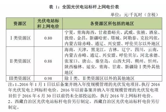 全國光伏電站標(biāo)桿上網(wǎng)電價
