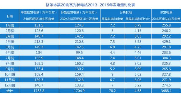 “正常情況下(不受限電影響),10兆瓦單晶硅光伏方陣2013~2015年3年發(fā)電量較10兆瓦多晶硅光伏方陣發(fā)電量增加78.2萬千瓦時,單晶硅較多晶硅發(fā)電量可高出4.58%!苯,一組青海格爾木20兆瓦光伏電站的運(yùn)行數(shù)據(jù)出爐,由組件差異決定的光伏電站系統(tǒng)效率的提升得出的結(jié)論。