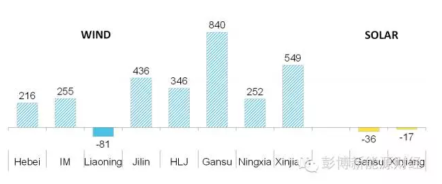 圖:保障性利用小時數(shù)估算結(jié)果與2015年實際利用小時數(shù)差值