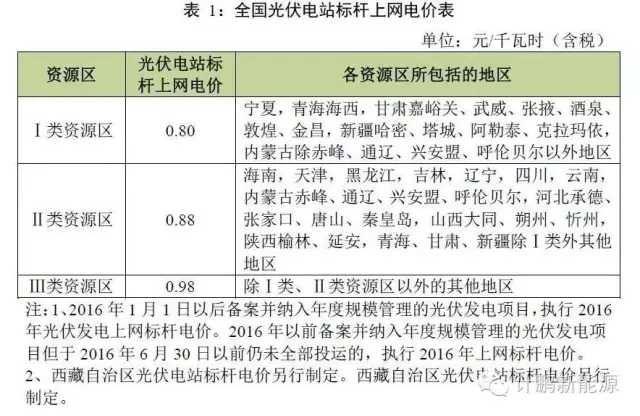 光伏電站:根據(jù)各地太陽能資源條件和建設成本,將全國分為三類標桿上網(wǎng)電價區(qū),相應制定光伏電站標桿上網(wǎng)電價。