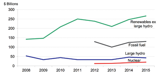 煤炭、石油和天然氣價格的持續(xù)下跌,使得傳統(tǒng)能源在不同程度上縮小了其發(fā)展規(guī)模,與之相反的是可再生能源在投資領域的熱度持續(xù)升溫。
