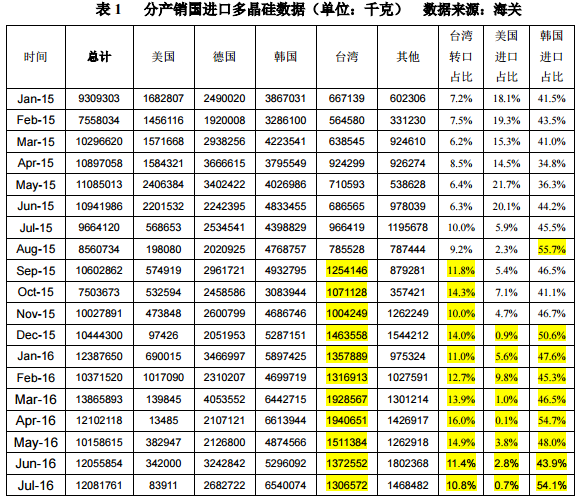 原標(biāo)題:自韓國進(jìn)口多晶硅持續(xù)放量 其他通過臺灣規(guī)避“雙反”