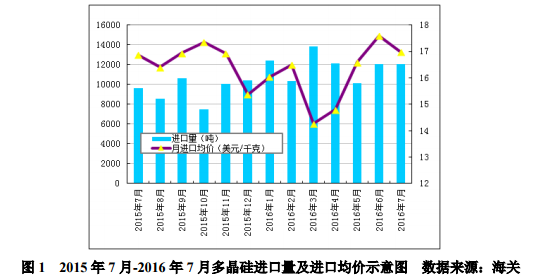根據(jù)海關(guān)最新數(shù)據(jù)統(tǒng)計,2016年7月份我國多晶硅進(jìn)口量依舊維持在萬噸以上,達(dá)到12082噸,環(huán)比增加0.22%,同比大幅增加25.0%......