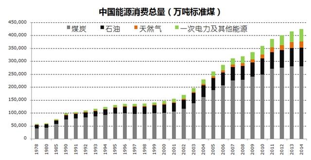 能源供給是經(jīng)濟發(fā)展的重要保障。從1978年到2014年,中國能源消費總量從5.7億噸標準煤提升到42.6億噸標準煤。受能源資源稟賦影響,中國能源消費以煤為主,清潔能源占一次能源消費的比重較低,能源高碳、低效開發(fā)仍是中國經(jīng)濟粗放式發(fā)展的縮影,經(jīng)濟步入“新常態(tài)”后,能源、環(huán)保需要與經(jīng)濟發(fā)展相協(xié)調(diào),以煤為主的高碳能源結(jié)構(gòu)不僅影響生態(tài)環(huán)境,同時也導致經(jīng)濟轉(zhuǎn)型進展緩慢。