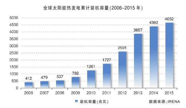 2015年,全球太陽能熱發(fā)電新增裝機容量主要來自于摩洛哥、南非和美國,新興市場的裝機增長首次超過美國和西班牙兩大傳統(tǒng)市場。