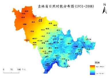 圖1-2:吉林省年日照時數(shù)分布圖