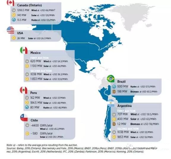 國際可再生能源署(IRENA)日前發(fā)布報告,盤點2016年各國風電、光伏的最低報價。
