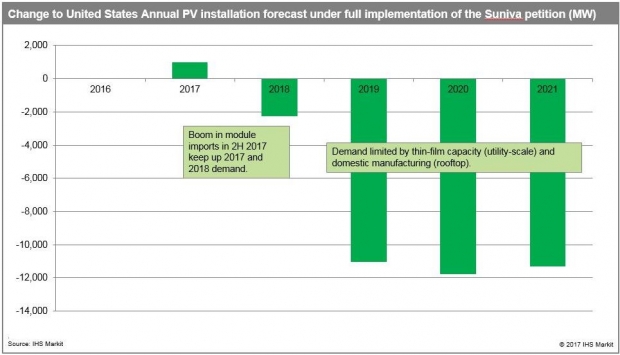 市場調(diào)研公司IHS日前表示,Suniva向美國國際貿(mào)易委員會(huì)提交的請(qǐng)?jiān)敢髸?huì)為投資商和全球供應(yīng)產(chǎn)業(yè)鏈帶來極大的不確定性,從而將美國光伏市場需求置于風(fēng)險(xiǎn)之中。
