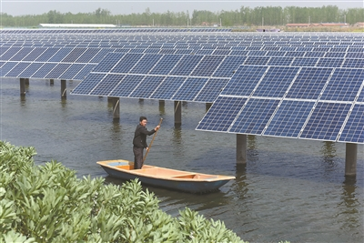 灌南縣 “農(nóng)光互補”光伏發(fā)電已并網(wǎng)發(fā)電產(chǎn)值超6000萬元 尹 權(quán)攝
