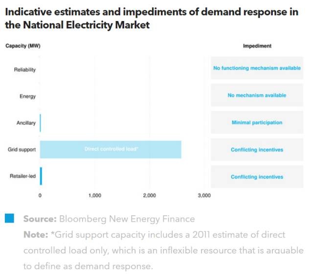 需求響應(yīng)在澳大利亞國家電力市場(NEM)中面臨的主要阻礙在于難以進入電力批發(fā)市場,而各大電廠的供電刺激措施也互相矛盾。NEM缺乏其它市場中需求響應(yīng)資源廣泛存在所須具備的兩大關(guān)鍵因素:容量電費或可用性費用以及第三方電力集成商的參與。而NEM目前只針對不可調(diào)度的需求響應(yīng)的參與提供刺激措施,但這一做法并無多大意義。