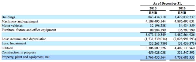 我們看行業(yè)最大的組件企業(yè)晶科能源,2016年年底累計(jì)固定資產(chǎn)64.87億人民幣,累計(jì)折舊20.28億人民幣,凈固定資產(chǎn)47.38億。