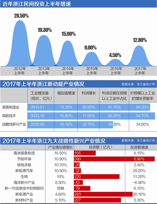 根據(jù)浙江省公布的經(jīng)濟(jì)半年數(shù)據(jù),上半年民間投資增速達(dá)12.8%,比去年同期提高8.3個百分點;民間投資在整個固定資產(chǎn)投資中的比重也提高了幾個百分點。