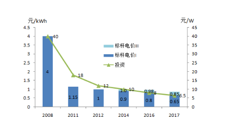 圖1 光伏發(fā)電投資和標(biāo)桿電價(jià)變化