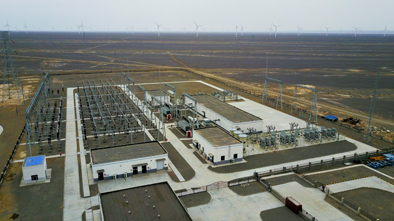 ▲這是6月30日在新疆哈密拍攝的220千伏煙墩西風(fēng)電匯集站。新華社記者胡虎虎攝