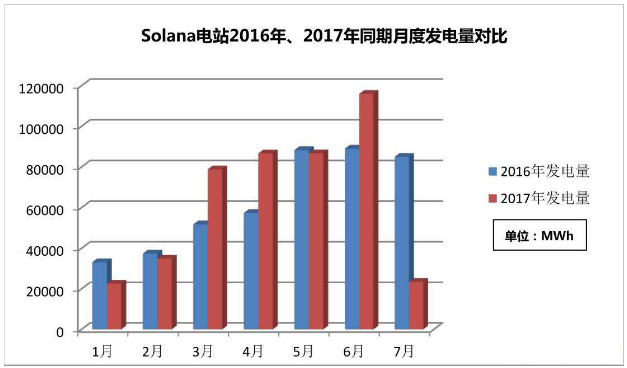 Solana、Ivanpah電站2016年、2017年同期發(fā)電表現(xiàn)對(duì)比