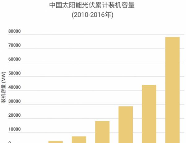 根據(jù)國際能源署的數(shù)據(jù),2016年中國新增光伏裝機34GW,這一數(shù)字是美國的兩倍還多,占世界新增裝機容量的近一半。以太陽能為代表的清潔能源若得以替代燃煤為主的發(fā)電結(jié)構(gòu),將極大地改善中國的環(huán)境狀況,在清潔能源領(lǐng)域的巨額投資正是中國各級政府的重點舉措之一。
