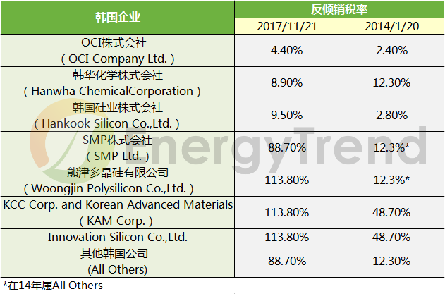 表:原產(chǎn)于韓國的進(jìn)口太陽能級多晶硅的反傾銷稅率調(diào)整