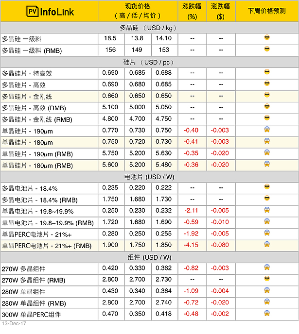 PVInfoLink的現(xiàn)貨價格主參考超過100家廠商之資訊。主要取市場上最常成交的“眾數(shù)”資料作為均價(并非加權平均值)、但每周根據(jù)市場分為略有微調。