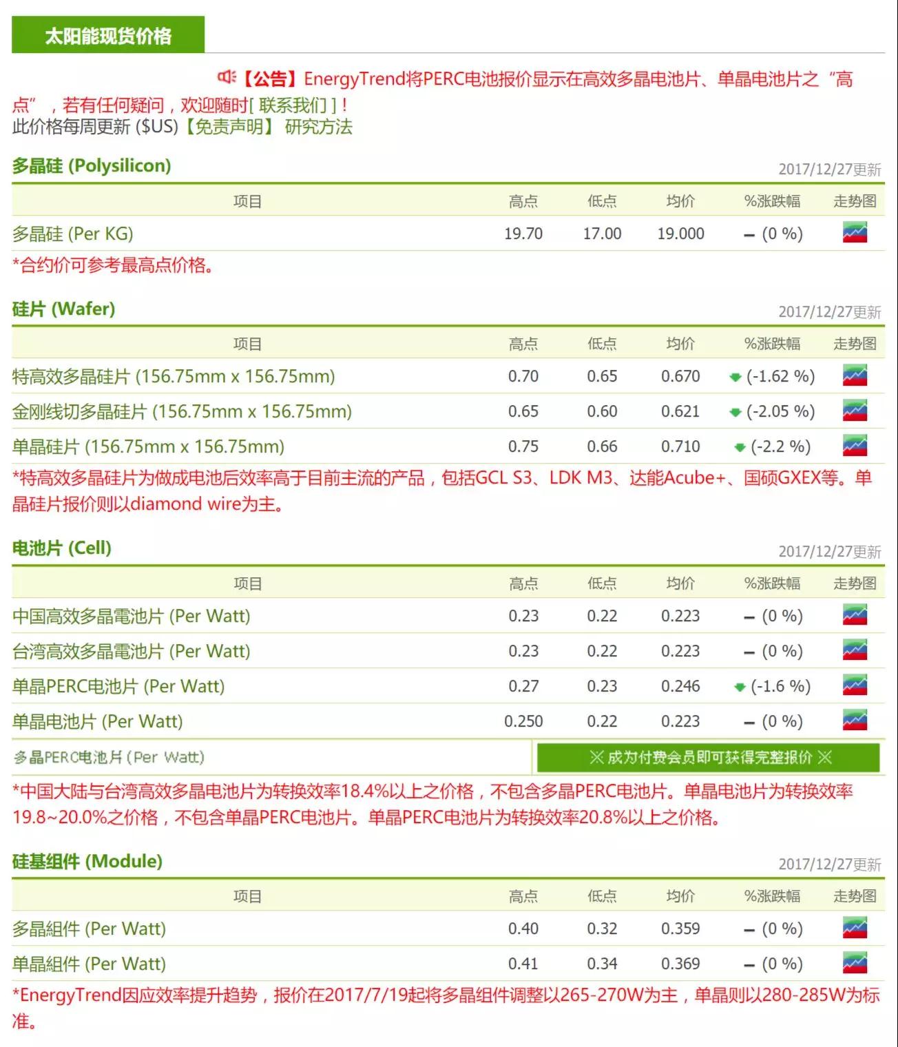 根據(jù)集邦咨詢新能源研究中心(EnergyTrend)分析,本周因為中國國家發(fā)改委釋出太陽能上網(wǎng)電價下調的正式文件,使得中國國內需求市場出現(xiàn)了一些活力,并為明年1月的需求帶來少量支撐。在供應鏈方面,由于可預見的明年一季度的需求弱勢,單多晶硅片廠紛紛調降1月份的市場報價,以增強下游環(huán)節(jié)的競爭力,因