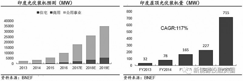 受到政策鼓勵(lì)、上網(wǎng)電價(jià)低等影響,印度明年整體裝機(jī)會有大幅度提升。其中屋頂光伏裝機(jī)將會大幅增加。