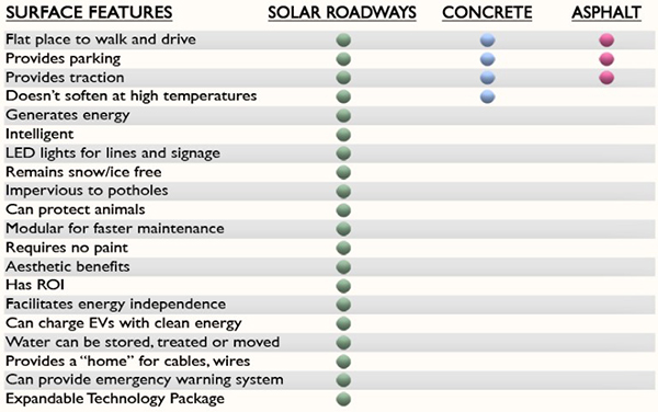 太陽(yáng)能道路的公司給出的太陽(yáng)能道路的好處列表。圖片來源:http://www.solarroadways.com/