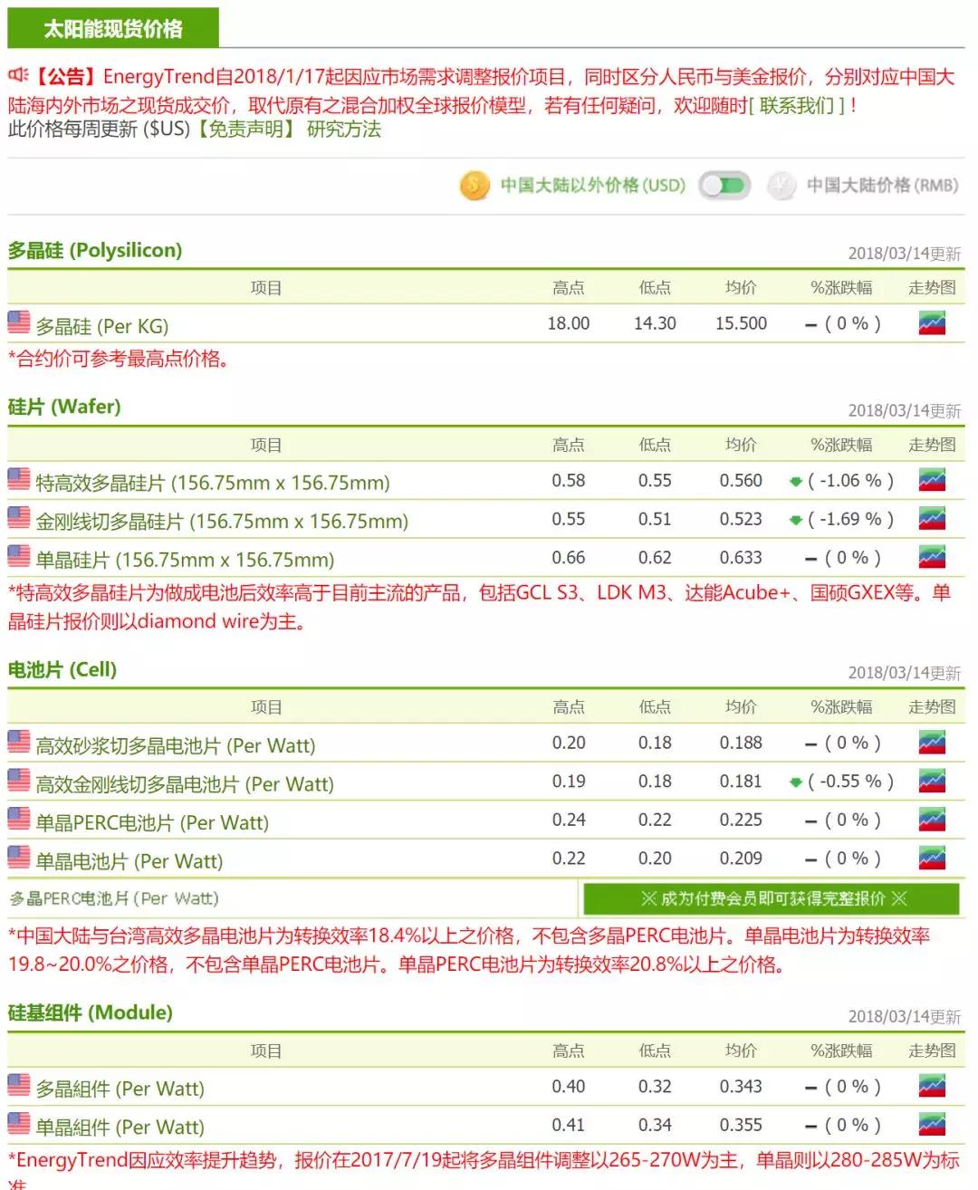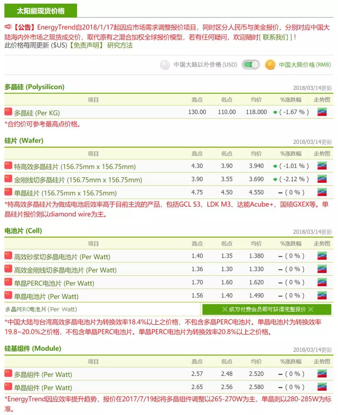 終端雖無明顯動作,但由于整體市場氣氛看好,因此價格仍然維持穩(wěn)定。本周多晶組件價格在RMB 2.5-2.57/W,單晶組件價格在RMB 2.57-2.62/W。