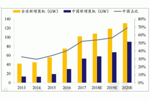 2017年全球新增裝機(jī)容量102GW,同比增長(zhǎng)33.7%。其中,中國(guó)2017年裝機(jī)53GW,全球裝機(jī)占比過(guò)半,系第一大市場(chǎng),預(yù)計(jì)2018年裝機(jī)為55~60GW,持續(xù)領(lǐng)跑全球。同時(shí),印度有望超越美國(guó)成為全球第二大市場(chǎng);墨西哥、巴西等新興國(guó)家有望實(shí)現(xiàn)高速增長(zhǎng)。
