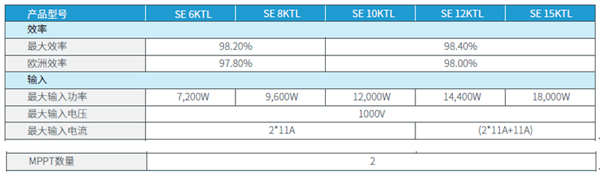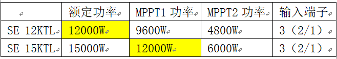 SE 15KTL的MPPT1最大輸入功率剛好12000W,等于SE 12KTL的額定功率,故SE 15KTL可以通過只接入MPPT1輸入降額成12kW使用。