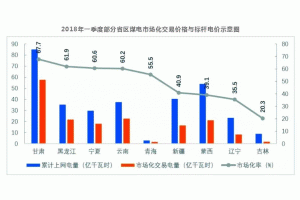 2018年一季度部分省區(qū)煤電市場化交易價格與標桿電價示意圖