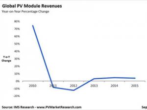 IMS Research最新季報顯示,快速下跌的光伏組件價格將導(dǎo)致2011-2012年全球光伏行業(yè)收益萎縮。光伏組件的過度供應(yīng)和激烈的市場競爭已致使2011年組件價格迅速下滑。盡管組件出貨量繼續(xù)增長,預(yù)計2011年收益仍將減少10%,2012年還會繼續(xù)下降。