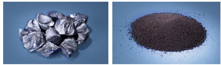 硅烷流化床法制備的顆粒硅(右)