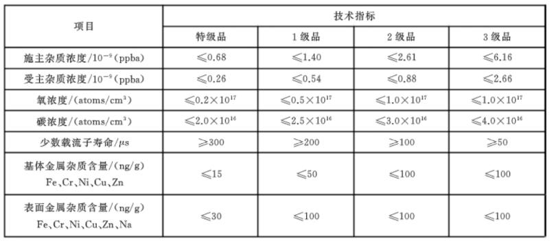 表2 太陽能級多晶硅(GB/T 25074-2017)技術指標