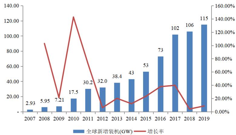 圖6 歷年全球光伏新增裝機容量及增長率