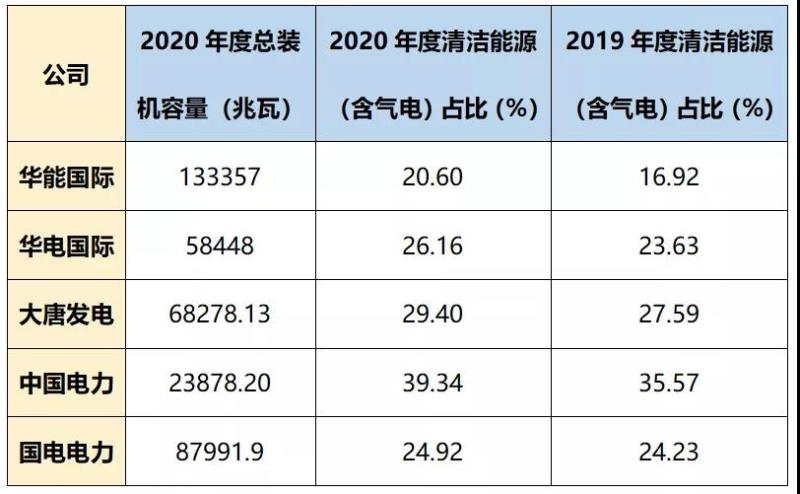 電力行業(yè)如今正加快低碳轉(zhuǎn)型。從清潔能源裝機(jī)比例(含氣電)上看,中國(guó)電力比例最大,為39.34%,上一年度清潔能源裝機(jī)占比為35.57%。大唐發(fā)電、國(guó)電電力、華電國(guó)際、華能?chē)?guó)際清潔能源裝機(jī)依次為29.4%、26%、24.92%和20.6%,均高于上一年度。