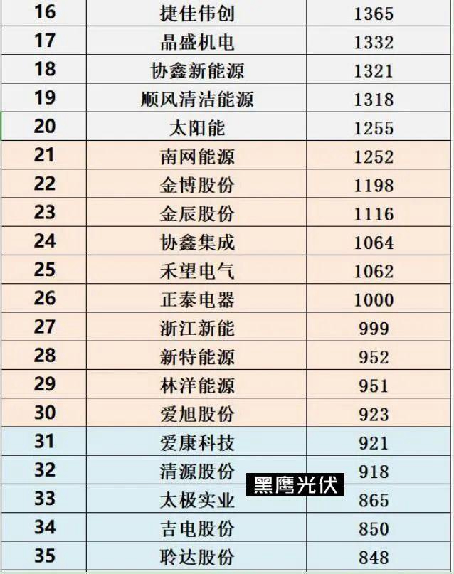 2.排在前五的企業(yè)還包括信義光能、通威股份、陽(yáng)光電源和天合光能。
