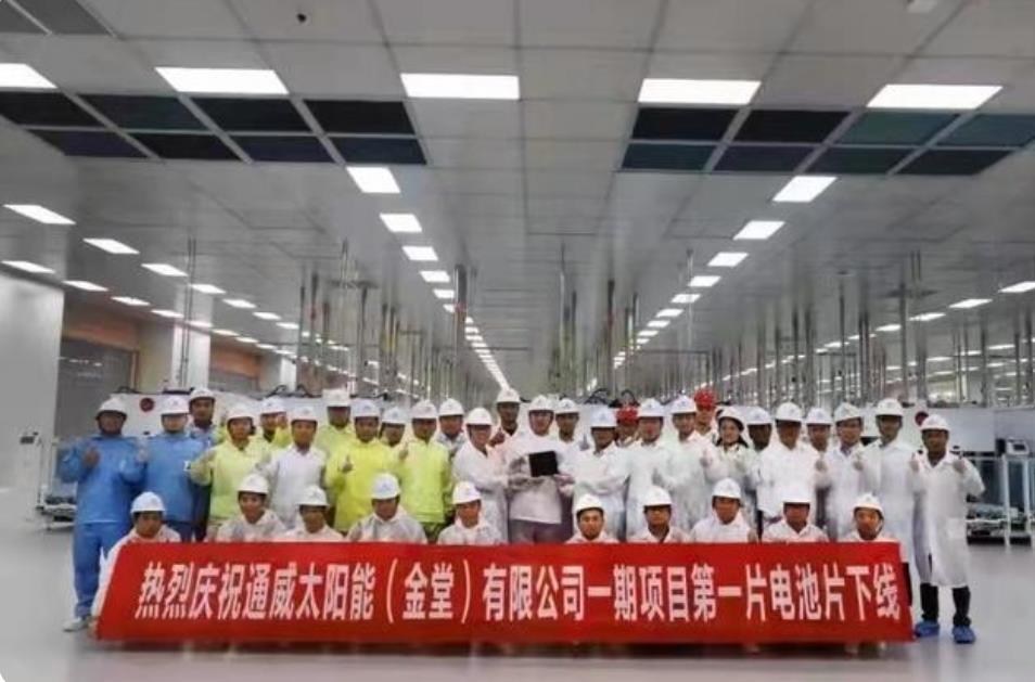 5月28日,通威太陽能金堂基地一期項目第一片210 PERC電池片順利下線(公司供圖)