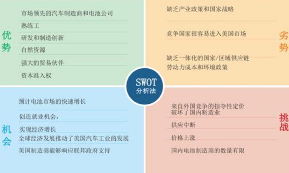 圖1:美國(guó)鋰電池產(chǎn)業(yè)SWOT分析