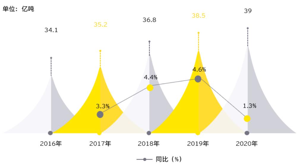 圖2:2016年-2020年我國原煤產(chǎn)能