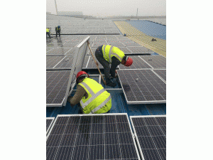 近日,記者來到連云港市灌南縣百祿鎮(zhèn)奧恒制衣廠,登上廠房屋頂首先映入眼簾的便是大片的深藍(lán)色光伏發(fā)電板,在陽光的照射下熠熠生輝。