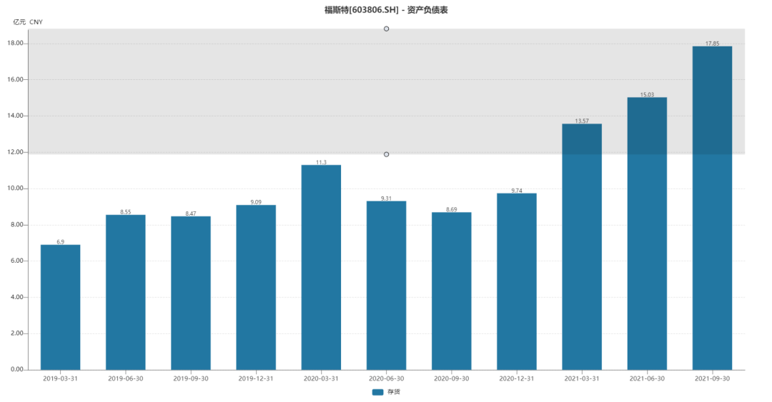 福斯特在2021年中報(bào)披露,存貨余額15.03億元,其中8.54億元是原材料,6.14億元為庫存商品。