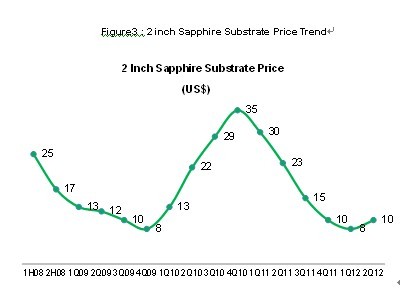 2010年的全球LED制造業(yè)的擴(kuò)產(chǎn)潮,帶來了對(duì)藍(lán)寶石襯底的需求大幅增加,藍(lán)寶石襯底價(jià)格也水漲船高,以普通2寸藍(lán)寶石襯底為例,平均價(jià)格從2009年Q4的8美金上漲到2010年Q4的35美金只用了一年時(shí)間,并使得原本相對(duì)平靜的的藍(lán)寶石襯底制造領(lǐng)域受到越來越多的關(guān)注。