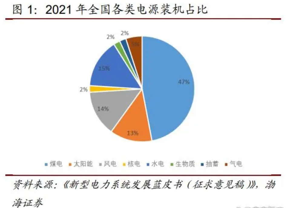 新能源發(fā)電快速提升,煤電基礎(chǔ)保障作用明顯。根據(jù)《新型電力系統(tǒng)發(fā)展藍皮書 (征求意見稿)》,2021年我國總發(fā)電量約為8.4萬億千瓦時。其中非化石能源發(fā)電量達2.9萬億千瓦時,占總發(fā)電量的35%。細分來看,新能源發(fā)電量1萬億千 瓦時,占總發(fā)電量的12%,分別比2010年和2015年提升11 個、8個百分點。 煤電方面,2021年煤電發(fā)電占全年總發(fā)電量的61%,我們認為,考慮到我國以煤為主的能源資源稟賦,煤電作為電力安全保障的“壓艙石”,主體電源的基礎(chǔ)保障作用明顯,短期內(nèi)將仍是電力系統(tǒng)中的基礎(chǔ)保障型電源,預(yù)計 2030 年前煤電 裝機和發(fā)電量仍將保持增長。