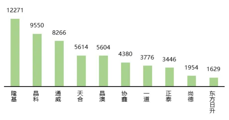 據(jù)不完全統(tǒng)計,1-6月,光伏組件累計招標規(guī)模114.2GW,同比增長25.2%。公示的各廠商中標規(guī)模共64.8GW,隆基、晶科、通威累計組件中標量位居前三,合計占比達46%。隆基中標規(guī)模獨超10GW,依然居于首位,發(fā)展勢頭強勁的通威首次超越晶澳、天合,排名第三。